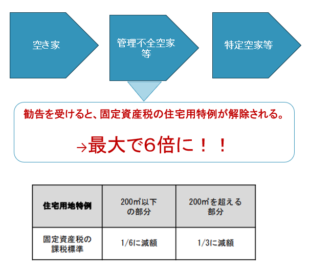 固定資産税の住宅用地特例(課税標準1/6軽減)は、「管理不全空家」や「特定空家」に認定され、かつ勧告を受けた場合に適用が外されます。